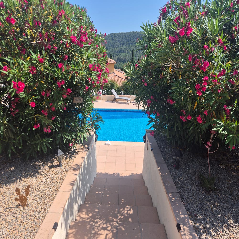 Tout cela dans notre écrin de verdure et de quiétude et dans l’environnement exceptionnel qu’offre notre propriété, son parc, sa vue et sa magnifique piscine.